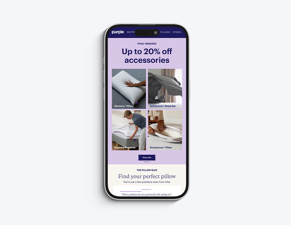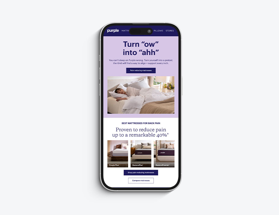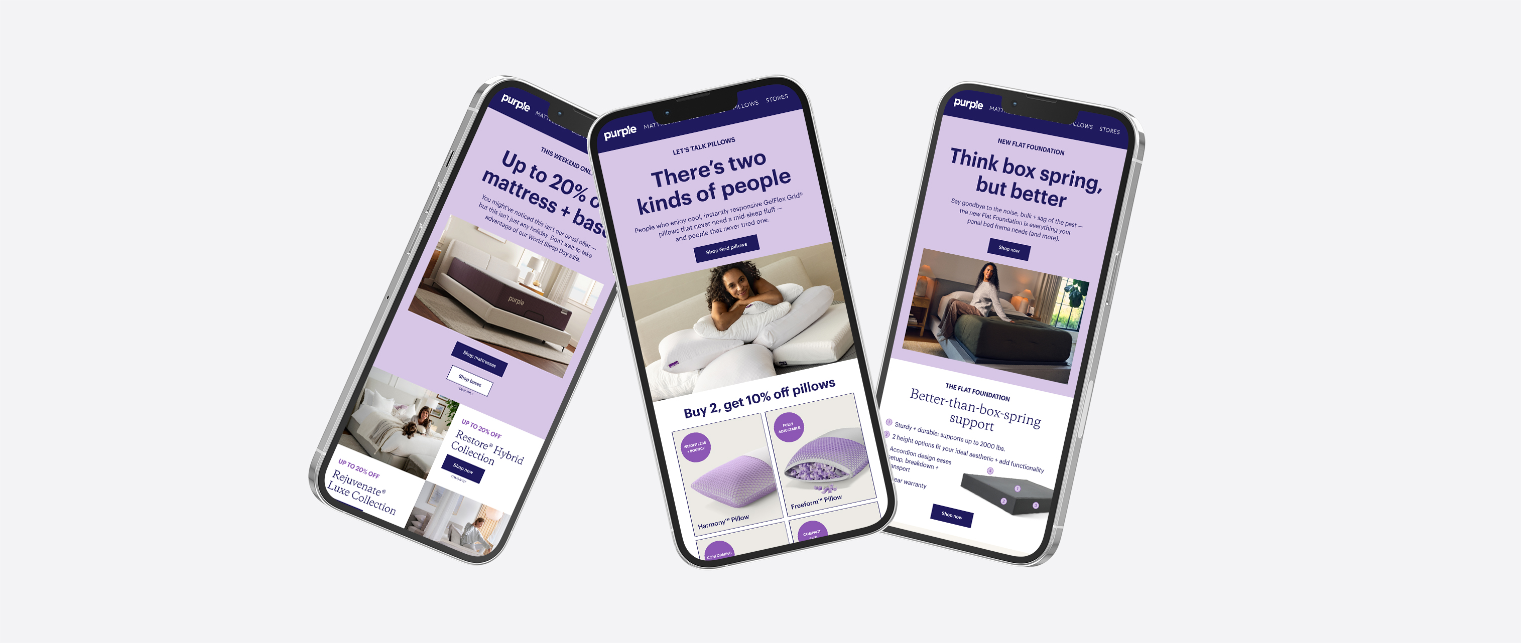 - When I began working on the design team at Purple, there was a very loose design guide in place to follow when creating their emails. It was glaringly apparent their emails needed consistency and adherence to brand standards.